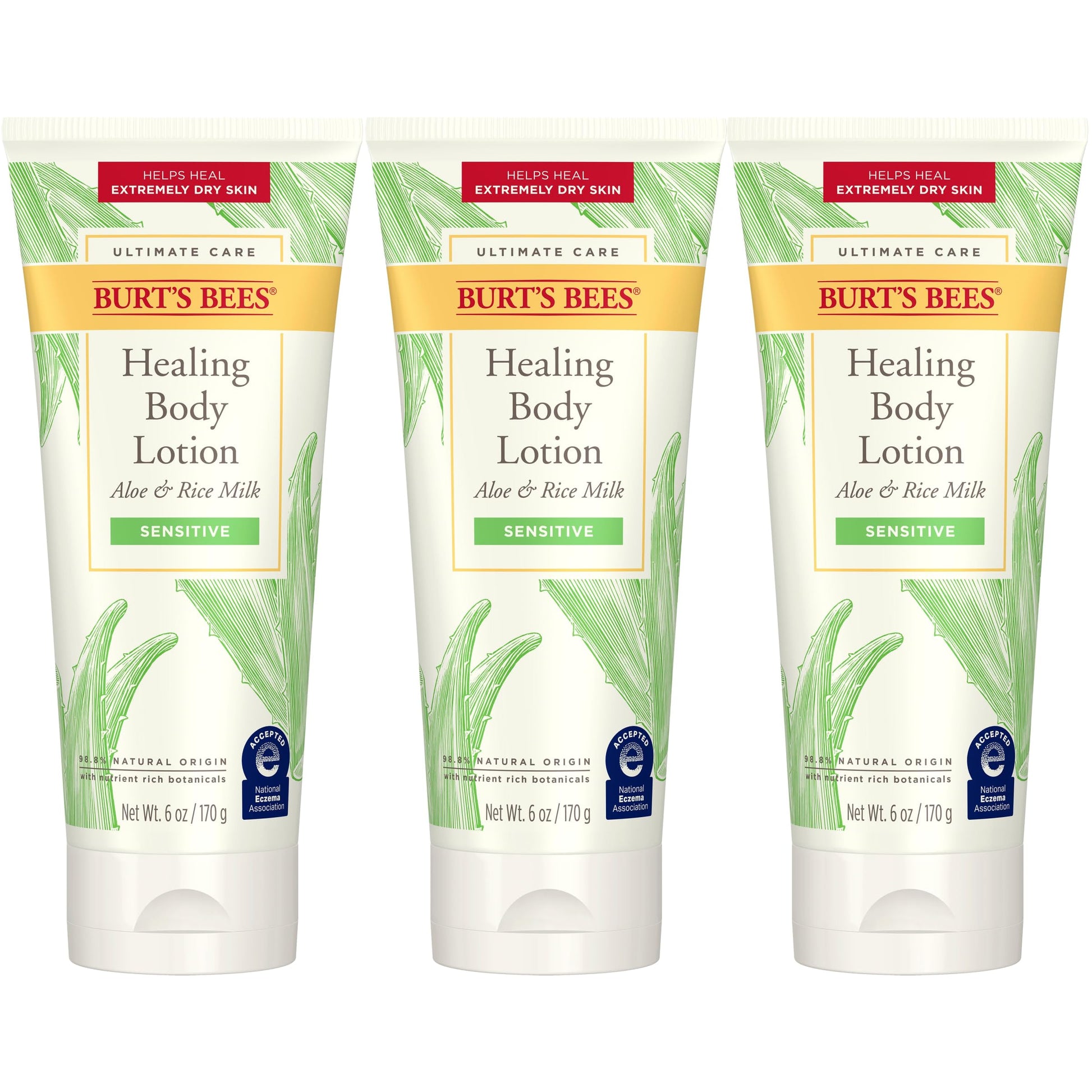 Burt's Bees Ultimate Care Healing Body Lotion with Aloe and Rice Milk for Sensitive Skin, 98.8% Natural Origin, 6 Ounces