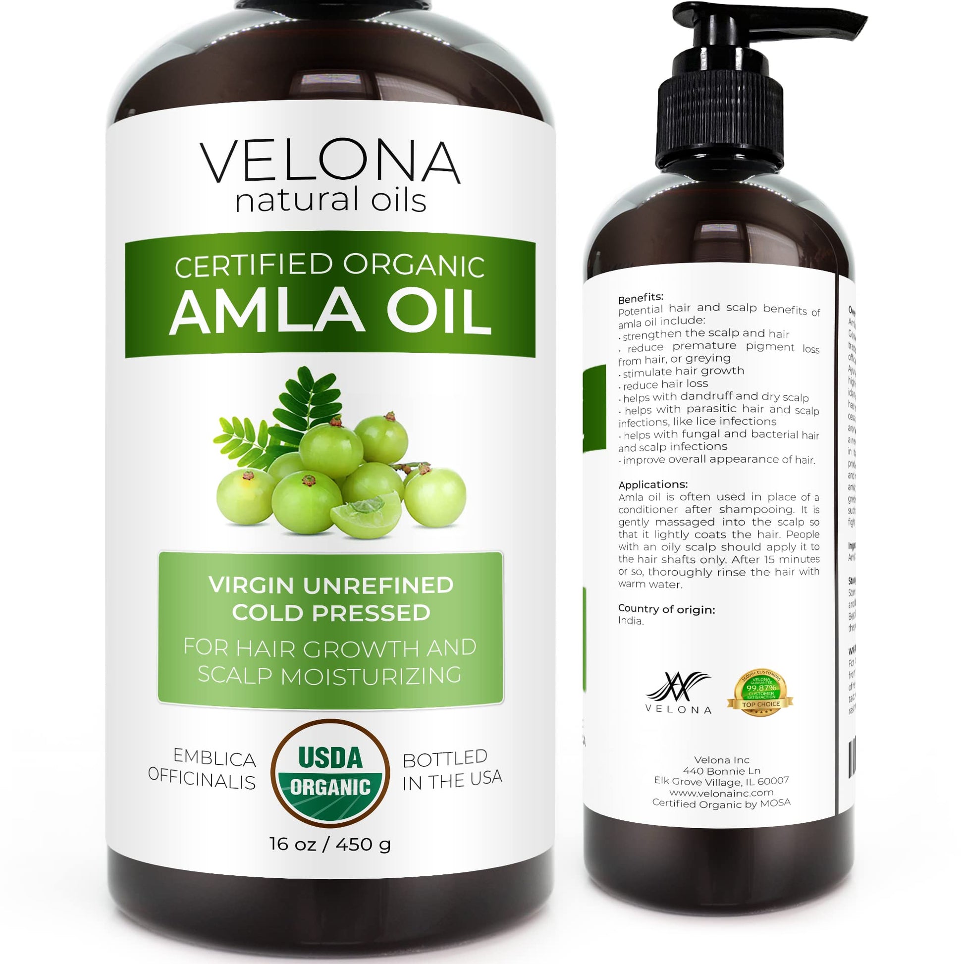 velona Amla Oil USDA Certified Organic - 16 oz | 100% Pure and Natural Carrier Oil | Extra Virgin, Unrefined, Cold Pressed